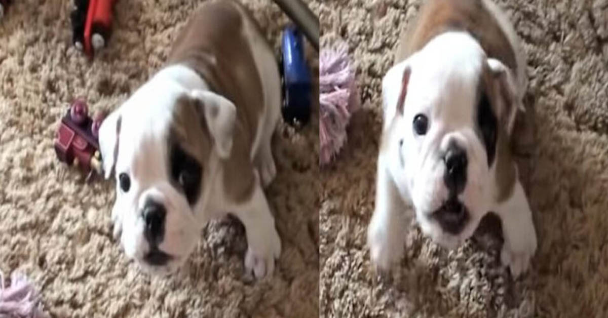 Una dulce cachorrita bulldog está derritiendo millones de corazones en Internet después de que su dueño la grabara enfurecida exigiéndole el cómodo lugar a su lado en el sofá, el…